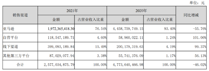 2021年泽宝通过自营平台(独立站)、沃尔玛平台、线下等非亚马逊渠道实现营业收入正向增长,逐渐降低对亚马逊单一平台的依赖。由此可见,多渠道布局的重要性!